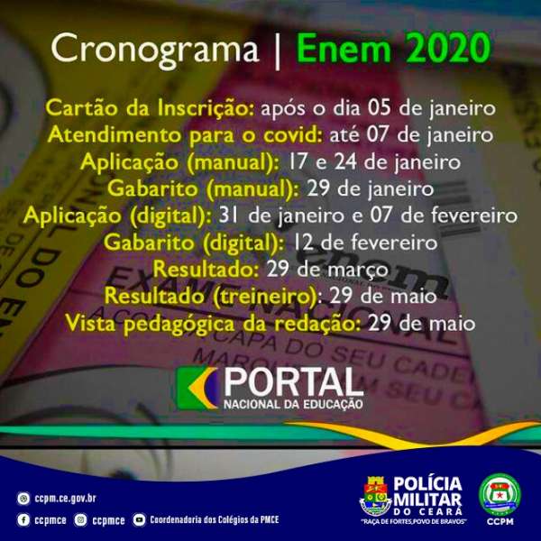 Fiquem atentos ao calendário do Exame Nacional do Ensino Médio.