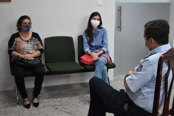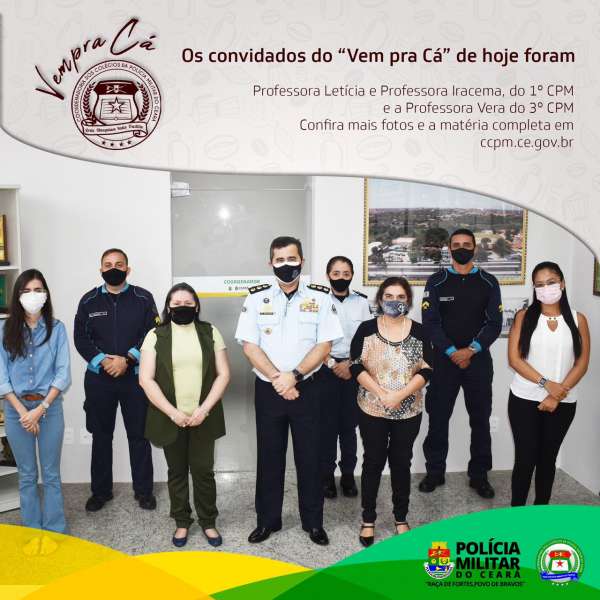 A acolhida da CCPM recebeu no Salão Nobre as docentes Letícia Freitas e Iracema, respectivamente do Ensino Médio e do Ensino Fundamental do 1º CPM de Fortaleza, e a professora Vera, representando o 3º CPM de Maracanaú, com participação do Coordenador, Coronel PM Porto e da equipe da Diretoria de Ensino, Capitão PM Diana, Sargento PM Cícero, Cabo Matias e da servidora Lívia. Além de relembrar os bons momentos, ainda do período anterior a pandemia, os professores demonstram estar ansiosos pelo retorno das aulas presenciais de forma segura. Ideias, sugestões, cuidados com a saúde física e mental também foram discutidos.