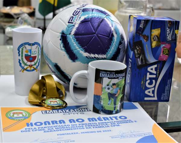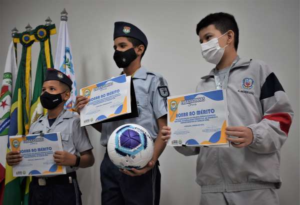 O Desafio Embaixadinhas dos CPMs premiou três alunos do 1º Colégio da Polícia Militar, em Fortaleza, o evento de encerramento aconteceu na manhã desta sexta-feira, dia 28, no Salão Nobre da CPPM. Os alunos: Cauê Lima Veiga da Silva, 6° ano D, Werick Silva França 4° ano D e Paulo Matheus Paixão Uchoa – 5º ano C, todos do 1º CPM-GEF, receberam a premiação entregue pelo Coordenador dos CPMs, Coronel Porto e do Comandante da 1º Unidade de Ensino, Tenente Coronel Sales. A cerimônia foi conduzida pela aluna Irismar Rocha do 1º CPM e contou com a participação dos pais. O aluno Tenente Coronel Galvão que pertence ao 3º CPM de Maracanaú também foi premiado.