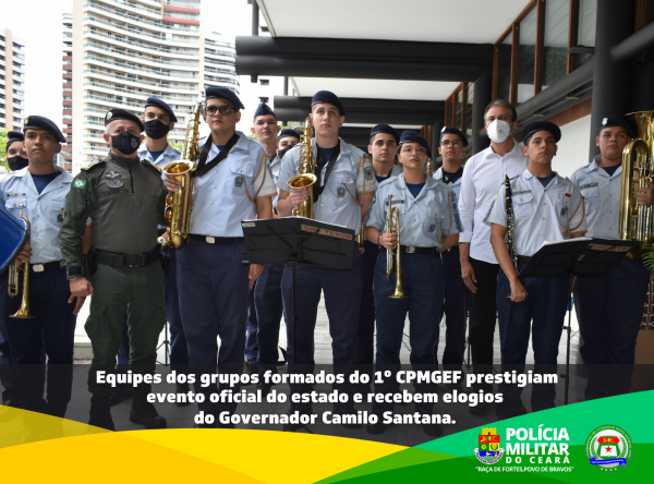 Os estudantes dos dois grupos formados do 1º CPMGEF foram elogiados pelo governador, em sua chegada ao evento, e pela sua equipe de cerimonial que atua nos eventos oficiais do estado. Além disso, a aluna Lanna Mendes do 3º ano do Ensino Médio, presenteou o governador com uma réplica em material artesanal, da aluna Subtenente Bany que representa todos os Colégios da Polícia Militar do Ceará.