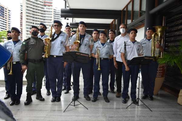 Na manhã deste sábado, 12, os alunos das equipes dos grupos formados de cerimonial e da banda música do 1º Colégio da Polícia Militar General Edgard Facó abrilhantaram o evento de Posse dos Conselhos Comunitários de Defesa Social (CCDS). O ato contou com a presença do Governador, Camilo Santana, do Coronel Comandante Geral da PMCE, Márcio Oliveira, do Secretário da SSPDS, Sandro Caron e lideranças comunitárias.