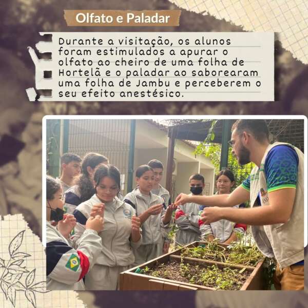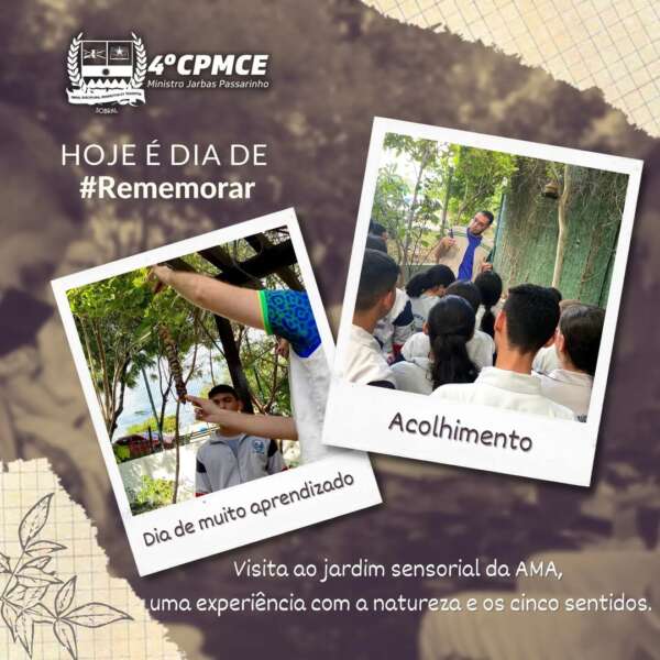 No dia 27 de Junho, os alunos do pelotão ambiental do 4ºCPMMJP, acompanhados pela 3ª sargento Ticiana, visitaram o Jardim Sensorial da AMA (Agência Municipal do Meio Ambiente), e através do direcionamento de especialista da instituição, puderam admirar a natureza e apurar os cinco sentidos humano.