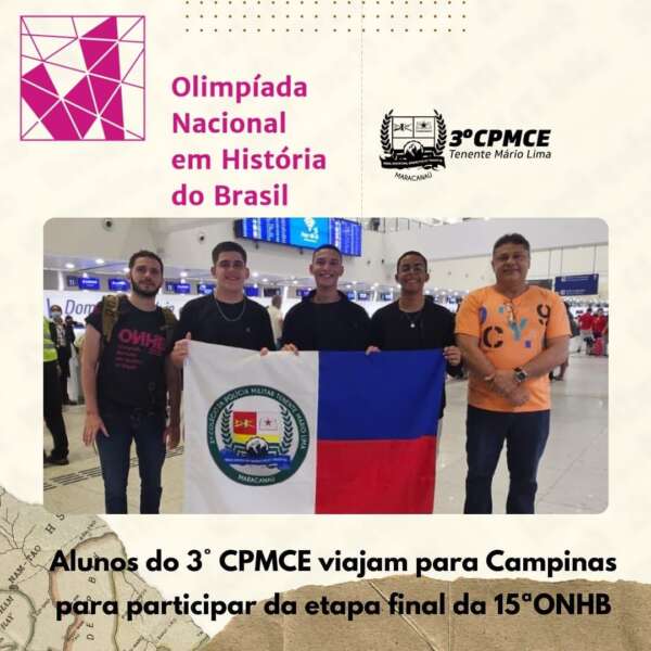 A Olímpiada Nacional Brasileira em História (ONHB) realizará neste final de semana, sua etapa final, na Universidade de Campinas (UNICAMP) em São Paulo. Neste ano, a ONHB somou 30,5 mil grupos participantes, um total de 120 mil pessoas. Destes, 340 equipes estão na final, onde serão entregues medalhas de ouro, prata e bronze, além de medalha de honra ao mérito. Os alunos do 3° CPMTML, Pedro Lima, 1° A, João Albuquerque, 1° B e Cauê Paiva, 1° A, conseguiram a maior pontuação entre as escolas públicas do Brasil 🇧🇷 e foram agraciados com as passagens aéreas pela própria Unicamp . Somos orgulhosos por todas as conquistas e sucesso de nossos alunos. Estamos na torcida 🤞