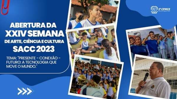 Na manhã de hoje, 16, o comandante do 1º CPMCE-GEF, Tenente Coronel Fechine, anunciou a abertura da XXIV Semana de Arte, Ciência e Cultura – SACC 2023. A semana cultural ocorrerá entre os dias 16 e 20 de outubro, com o tema: “Presente – Conexão – Futuro: A Tecnologia que move o Mundo”.