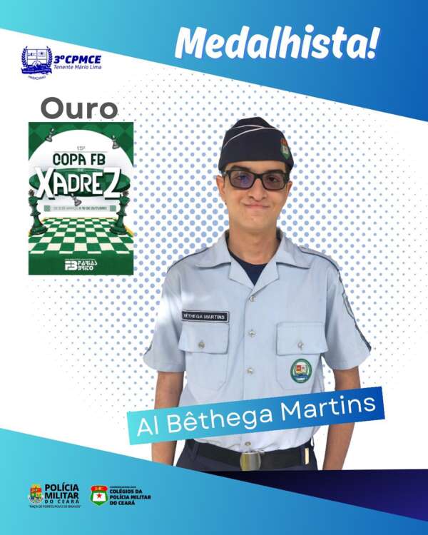 O 3º CPM-TML foi representado na XV Copa Farias Brito de Xadrez-Sub 16 pelos alunos Medeiros, do 2°ITA, Daniel Nakamatsu, do 2°B, Matias Paiva, do 1° ITA, Heitor Bêthega, do – 1°B, Paulo Hector Gregório, do 2°ITA.